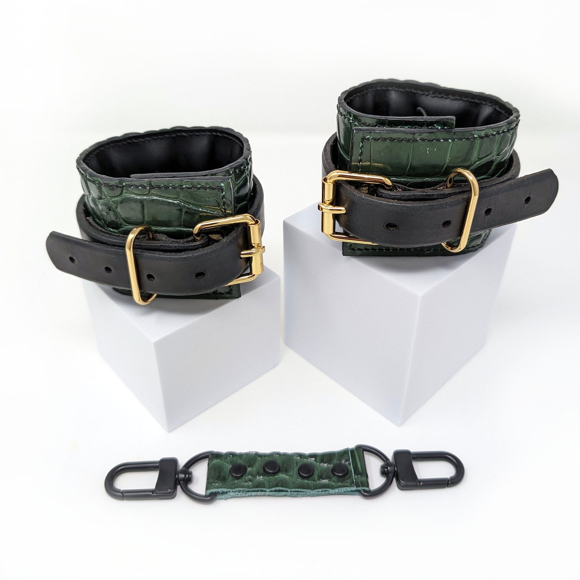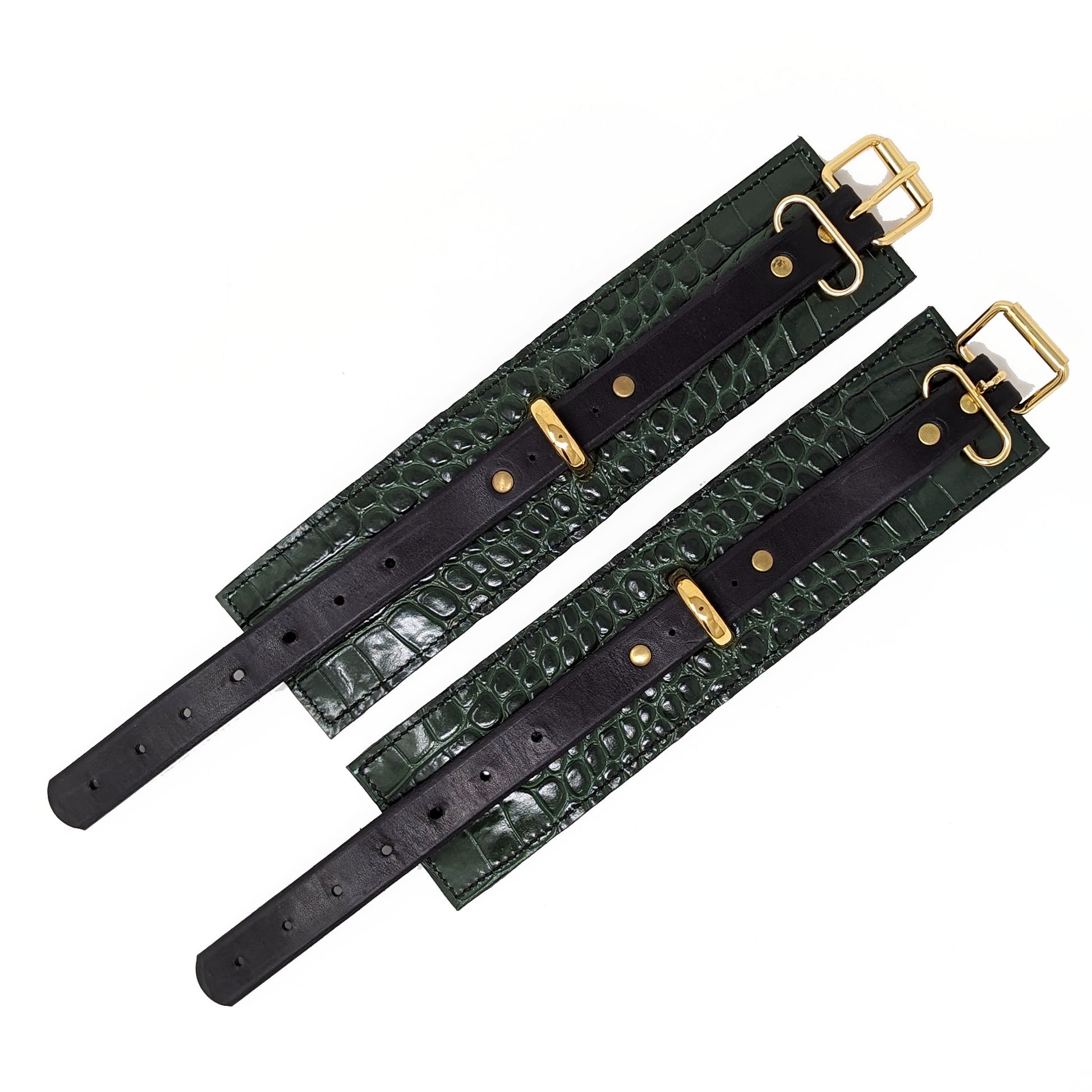 These restraints feature padding as well as an overlapping leather cuff that prevents skin/hair from getting caught in hardware (if you know, you know) for safe and comfortable long-term play.
